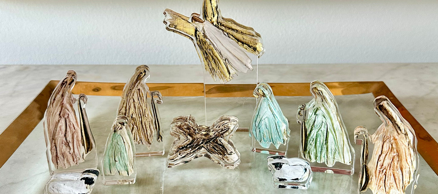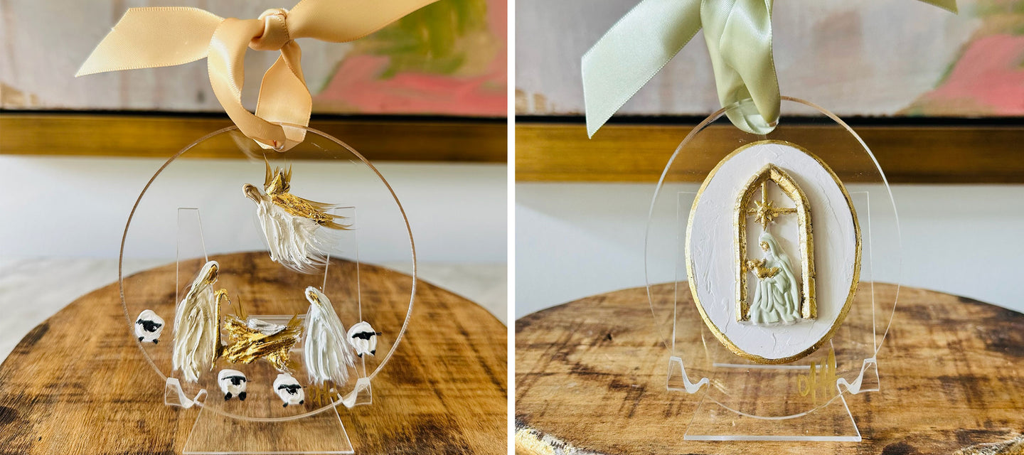 "Painting and creating art is so rewarding. I start with a blank canvas, and once the painting is complete, a story is revealed. I see angels, crosses, and how the hand of God is on our lives. Most days, my studio is filled with sounds of worship music, pages of Scripture being turned, and my trusty dachshunds at my feet. It is here that God moves my heart and we create together!"